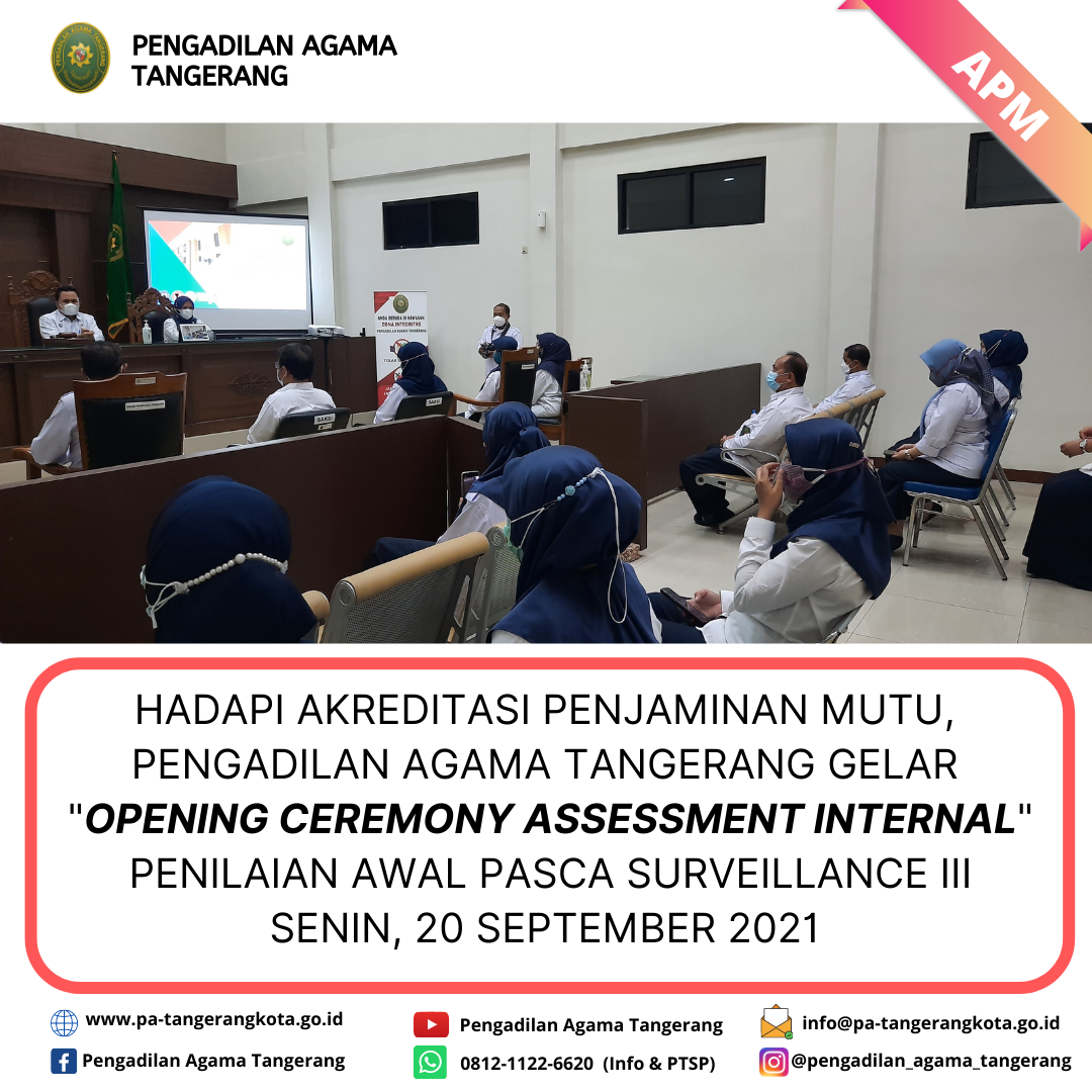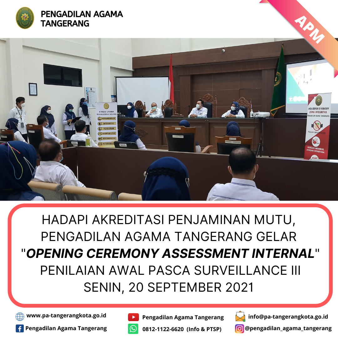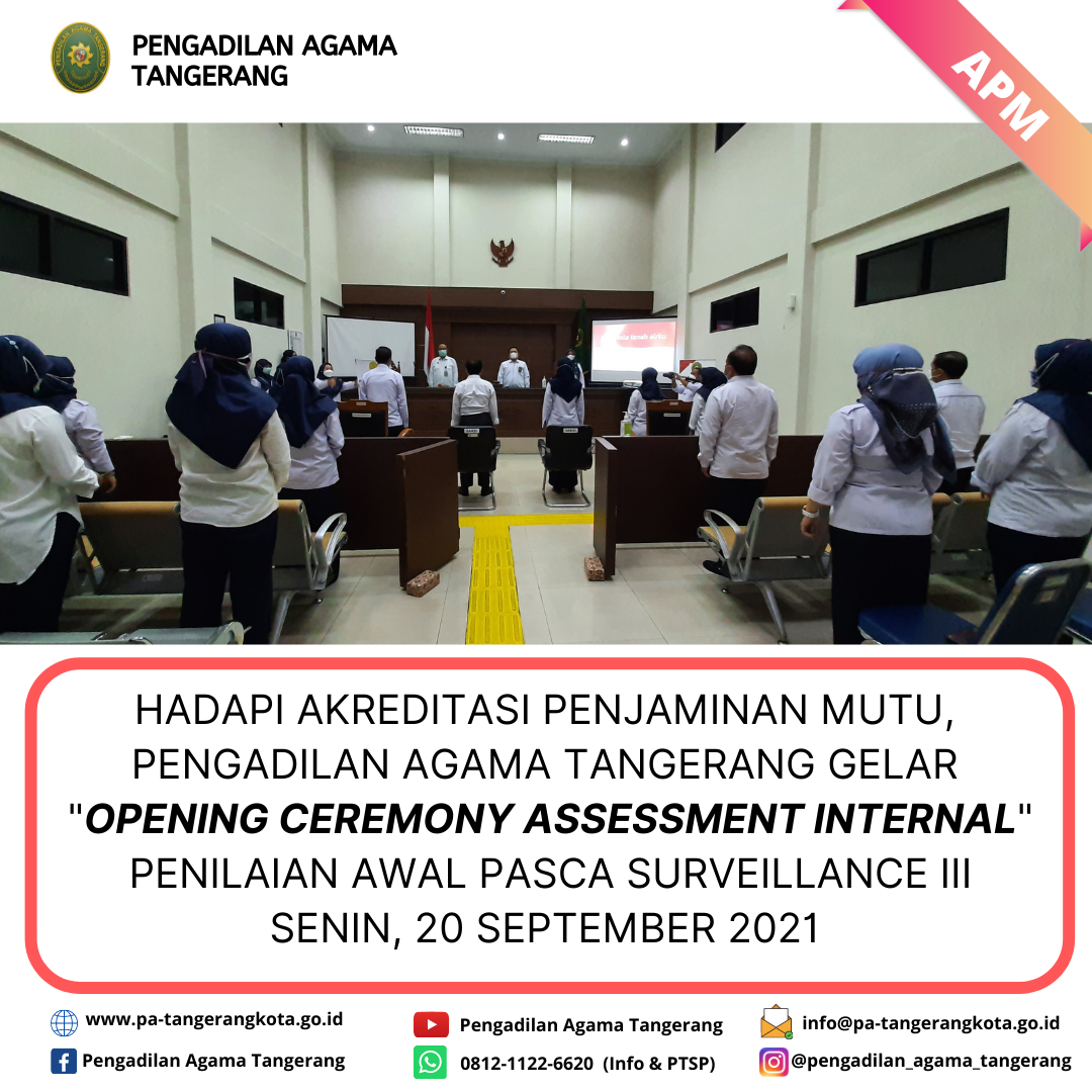 HADAPI AKREDITASI PENJAMINAN MUTU, PENGADILAN AGAMA TANGERANG GELAR “OPENING CEREMONY ASSESSMENT INTERNAL” PENILAIAN AWAL PASCA SURVEILLANCE III
