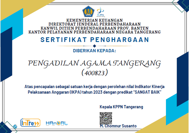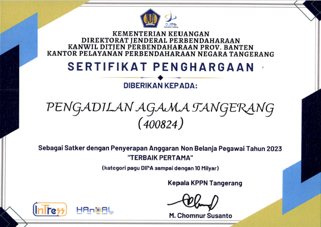 Penghargaan Pertama di Awal Tahun 2024, PA Tangerang Raih “Terbaik Pertama” dari KPPN Tangerang
